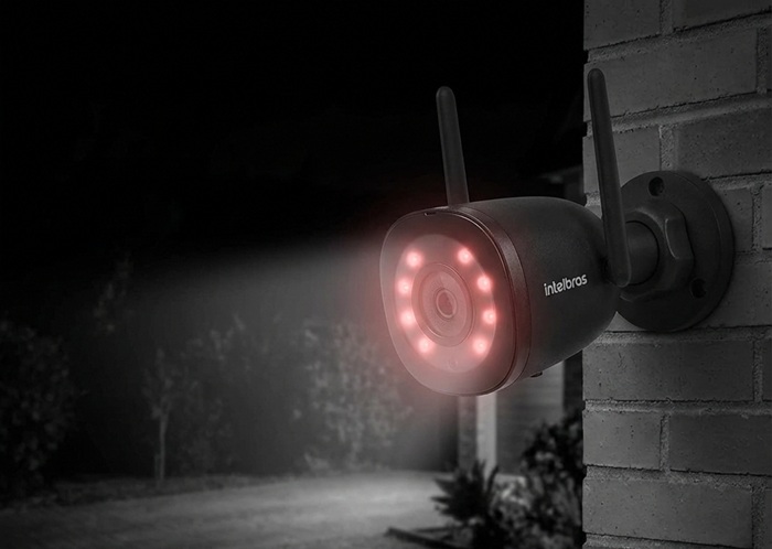 Um dos grandes trunfos deste modelo é o IR Inteligente. Em escuridão total, ela ativa os iluminadores infravermelhos que alcançam até 30 metros.